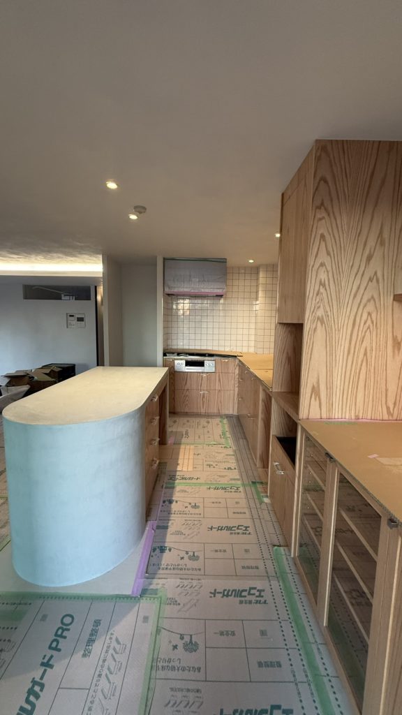 今回の中心となるのは、モールテックスで仕上げた“塊”のような存在感をもつアイランドカウンター。